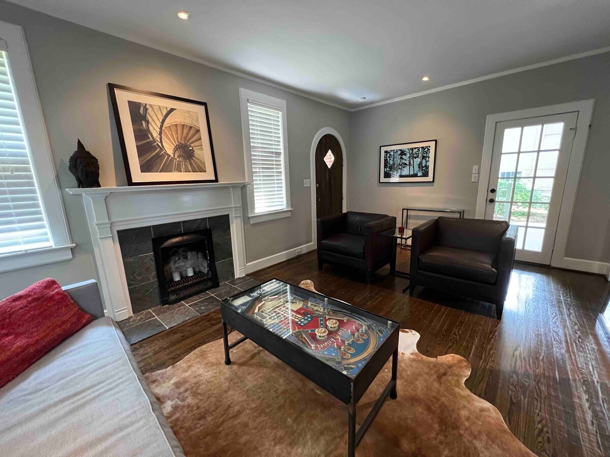 Perfekt beläget i ett exklusivt, lugnt, trädkantat grannskap, detta hippa 1940 klassiska renoverade hem är super-nära många av Columbias flottaste kaféer, butiker, USC campus, Fort Jackson, USC Law Center och andra stora attraktioner. Det slår precis rätt balans mellan plats, frid, stil och komfort. Här kan du hänga på verandan och njuta av fågelsång och närliggande kyrkklockor eller koppla av inomhus med 65-tums HDTV Surroundsound-system och supersnabbt WiFi!