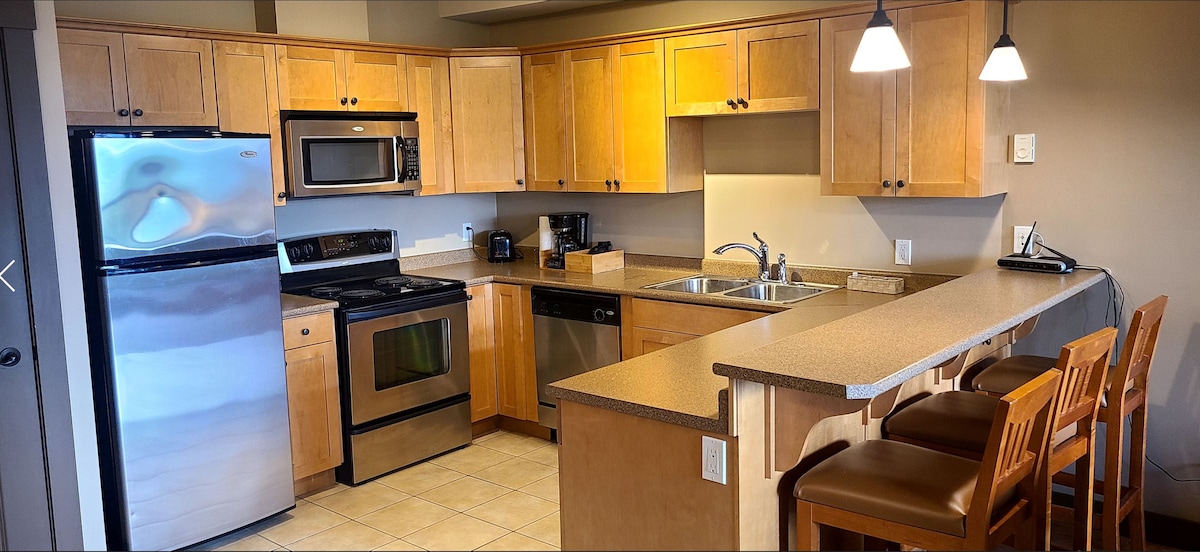 Palliser Lodge ligger några steg från bergsbyn och erbjuder en lugn miljö i gläntorna. Få enkel åtkomst till allt. - Enkel åtkomst till skidbackar. - I bergsbyn. Du behöver inte köra någonstans. - Tyst betongbyggnad - Enheten ligger på norra sidan och erbjuder fantastisk utsikt från tredje våningen. - Badtunna utomhus och gym i byggnaden - Grillar i gemensamt uteområde. Obs: Priset baseras på två vuxna. Barn under 18 år är gratis.