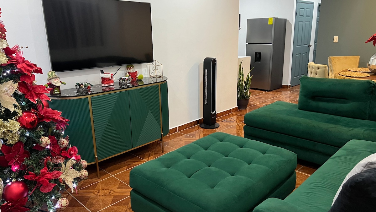 Relájate con toda la familia y amigos en este alojamiento donde la tranquilidad y la naturaleza se combinan. - La Habitación Principal cuenta con Aire Acondicionado - La Segunda Habitación cuenta con Aire Acondicionado - La Sala Cuenta con Aire Acondicionado -Mesa de Trabajo - La Cocina Cuenta con Aire Acondicionado -Agua caliente en el Baño y Cocina -Lavadora y Secadora -Estacionamiento para 2 Vehiculos