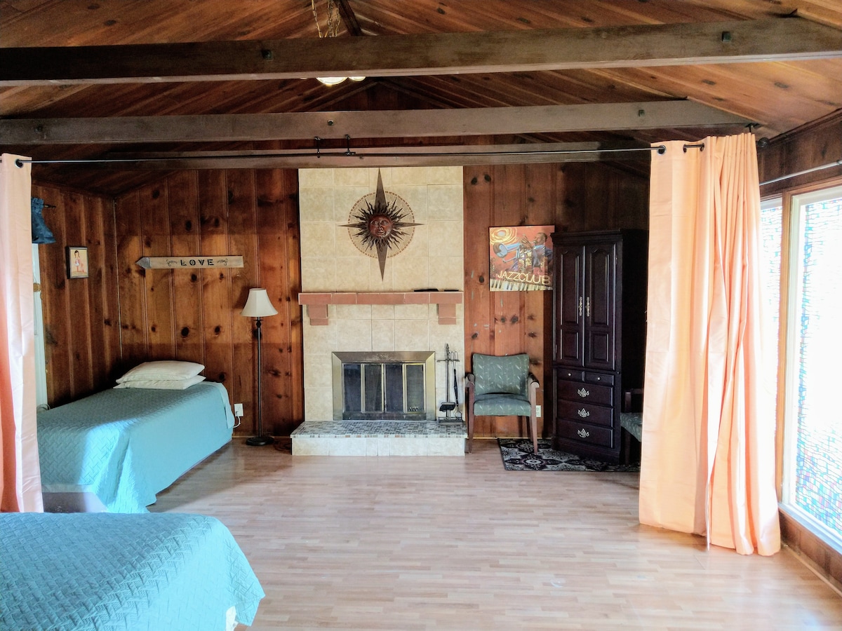 Lugn tillflyktsort, inbäddat i Hollywood Hills; andlig zen, privat oas. Sällsynt och coolt med ett modernt asiatiskt/balinesiskt perspektiv, perfekt för inomhus-/utomhusunderhållning. Varje badrum erbjuder lugn och avkoppling. Rymligt sovrum med öppen spis och badrum, badkar och regndusch. Slappna av i det uppvärmda utomhusspaet. Detta boende väcker ett känslomässigt svar. Dessutom är vi husdjursvänliga. Vårt boende rymmer endast upp till 8 personer, inga ytterligare gäster eller besökare tillåtna.