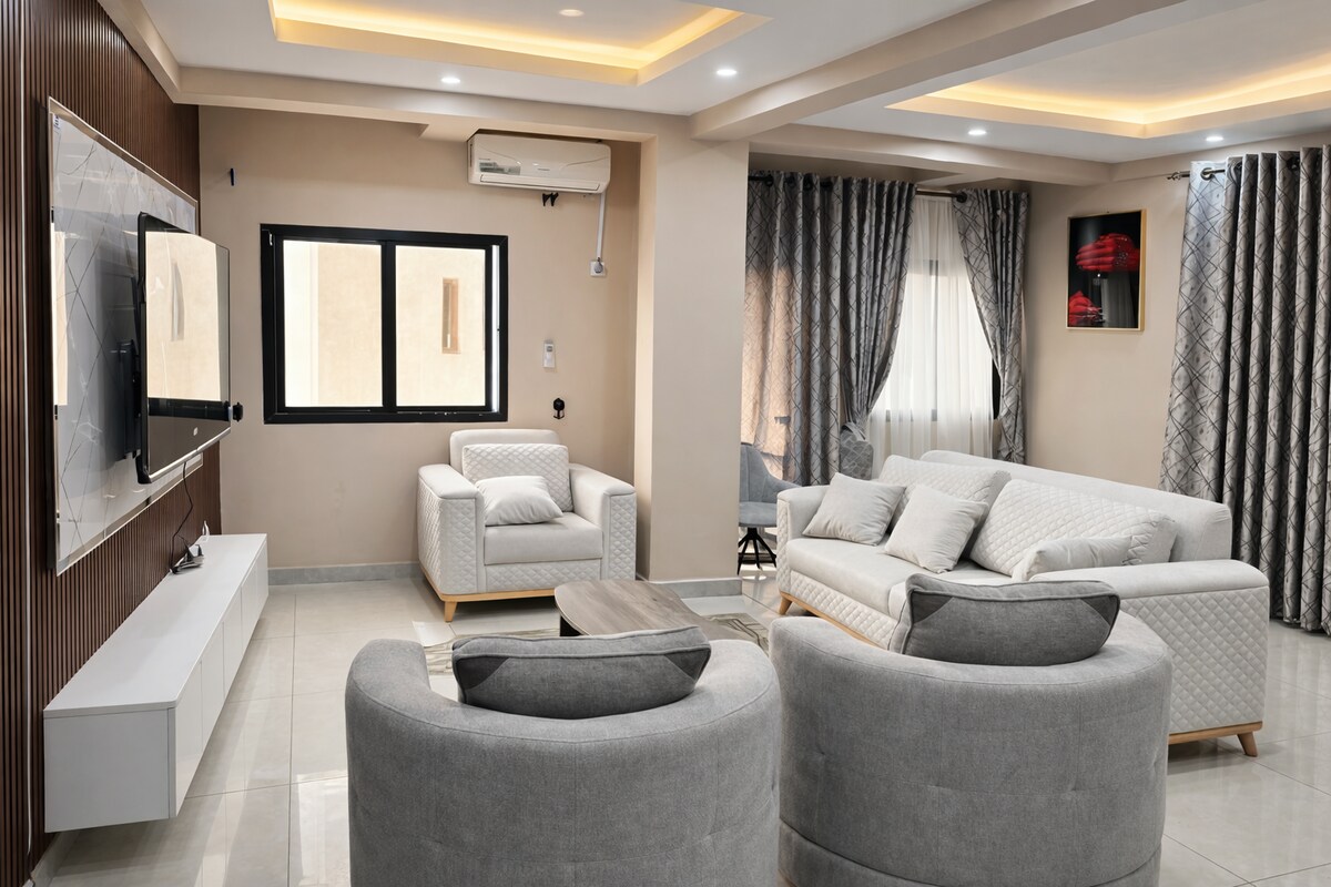 Modern lägenhet med 2 sovrum belägen i Gbessia Port 2, bara 10 minuter från flygplatsen och 5 minuter från stranden Bénarès. Perfekt för affärsresenärer eller familjer – här finns ett stort, ljust vardagsrum, två sovrum med badrum, utrustat kök, snabbt wifi och säker parkering. Njut av ett bekvämt, lugnt och perfekt beläget boende för dina resor till Conakry.