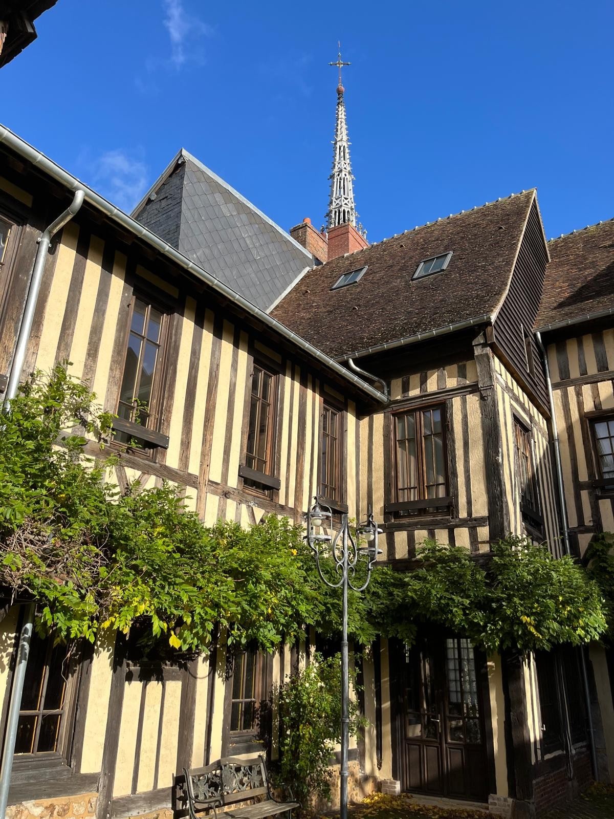 1 timme och 15 minuter från Paris och 1 timme från den normandiska kusten, kom och bo i ett av de äldsta husen i Conches-en-Ouche. Charmigt hus med innergård beläget i centrum där du hittar alla butiker. Stationen ligger inom gångavstånd. Huset är helt renoverat i en mysig och varm anda. För att ladda batterierna, rekommenderar vi att du besöker L'arboretum, Le Donjon och njuter av de många promenaderna i skogen.
