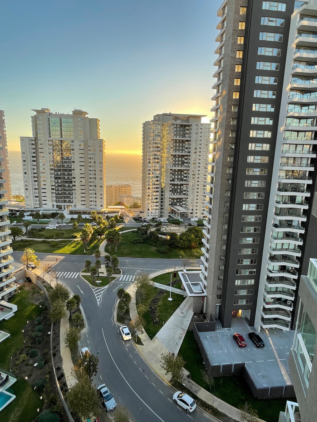 Ny lägenhet belägen i det exklusiva grannskapet Con con, Costa de Montemar. Lägenheten är möblerad och fullt utrustad med tillgång till internet, pool, gym, bastuuthyrning, privat parkering och har en spektakulär panoramautsikt. Det finns stormarknader och butiker mindre än fem minuter bort och lägenheten ligger 100 m från Con Con-sanddynerna, perfekt för två till tre personer, vilket är perfekt för att roa sig och koppla av.