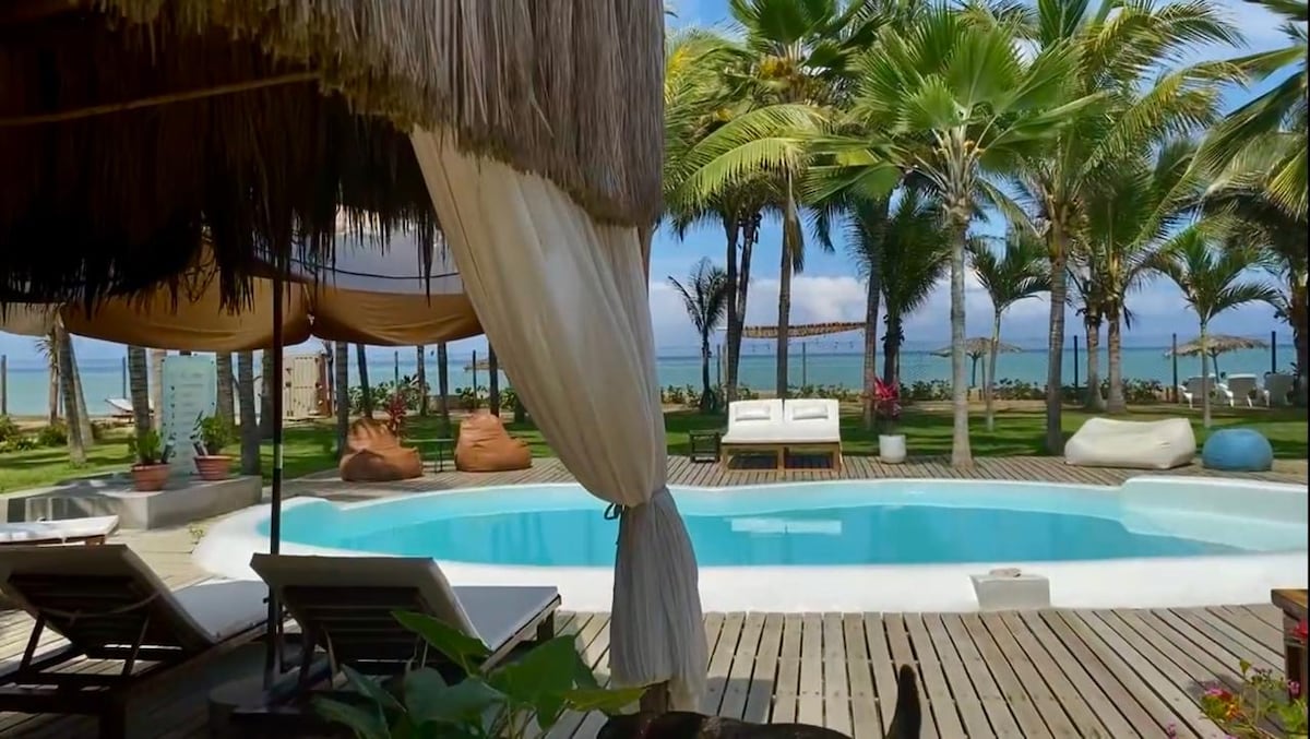 Vi är i en privat lägenhet med bara 15 hus framför stranden. Vi går direkt till sanden där det finns en gren med fåtöljer och ett lägereldsområde. Sovrummen är helt oberoende. Den största ligger på andra våningen och de andra 3 i bungalower runt de gemensamma utrymmena och poolen. Det finns två terrasser och ett inre rum som erbjuder gott om socialt utrymme. Alla sovrum och terrasser har havsutsikt. Varmt hav, lång strand, vackra solnedgångar och utsökt mat