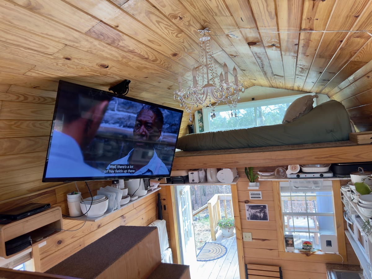 *Vi har nyligen lagt till en extra fläkt till loftet för att hjälpa till med sommarvärmen och en eldstad med sittplatser ute på baksidan.* Fiber Wi-Fi, välfyllt kök och utegrill! Otroligt läge, precis bakom campingplatsen vid ingången till Petite Jean State Park! Detta unika boende har en helt egen stil. A-ramshytten är omsorgsfullt utformad för att maximera utrymmet utan att offra bekvämligheter.