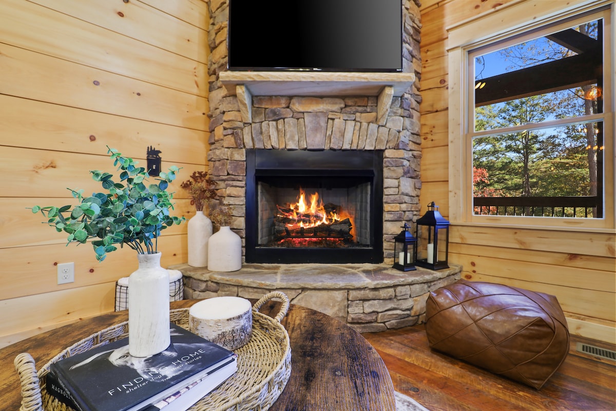 Välkommen till Hammock + Pine, en mysig stuga med utsikt över bergen som är utformad för vila, kontakt och enkel glädje. Perfekt för par, små familjer eller en lugn semester med din fyrbenta bästa vän, vår stuga blandar komfort, charm och genomtänkta bekvämligheter i en vacker bergsmiljö i norra Georgia. Stugan ligger i hjärtat av ett semesterområde som erbjuder något för alla: fiskedammar, picknickplatser, tennis- och pickleballbanor, pooler, putt-putt, lekplatser och mycket mer.