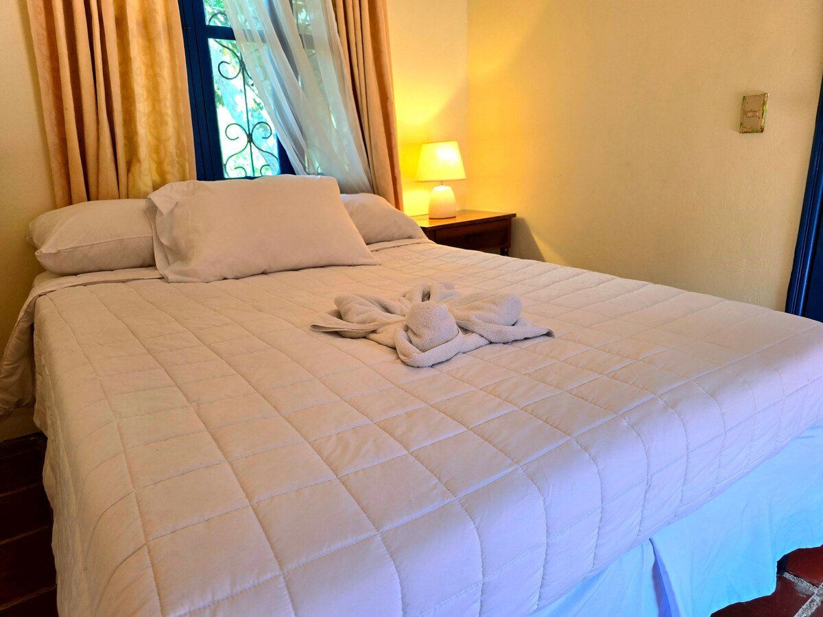Nuestra opción favorita para grupos o familias que buscan exclusividad y amplitud en Santa Rosa. • El Espacio: Dos amplias camas Queen con sábanas de lujo. Espacio de sobra para descansar y alistarse con comodidad. 🛌🛌 • Privacidad: Baño privado de diseño, impecable y con acabados de primera. 🚿 • El Ambiente: Un refugio fresquito y sofisticado, ideal para despertar con la mejor energía de Copán. ☕🇭🇳