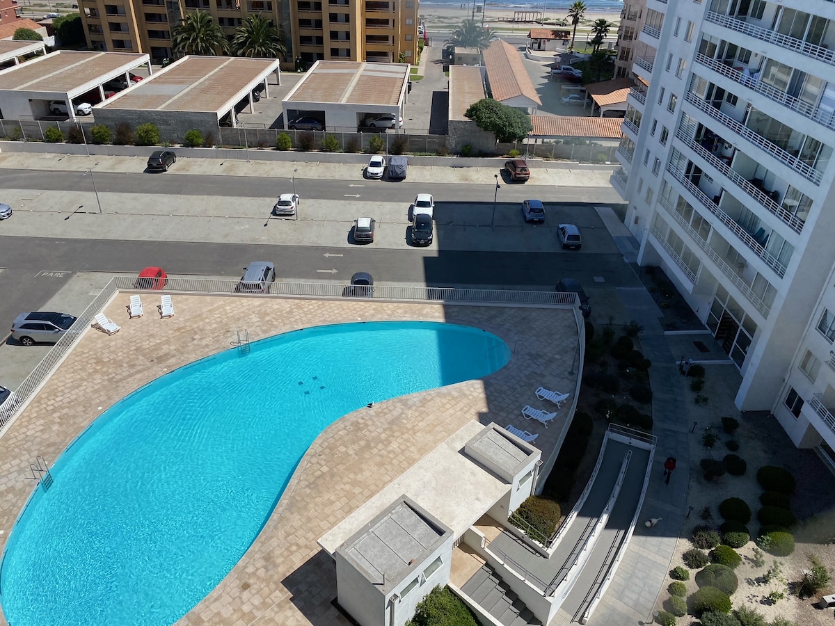 Koppla av på denna unika och lugna tillflyktsort. Vacker lägenhet med parkering, några meter från stranden. Amerikanskt kök, vardagsrum, 2 sovrum, 2 badrum, pool. Beläget 1 km från La Serena fyr, nära restauranger, kaféer och en surfskola. Området är perfekt för att promenera längs strandpromenaden i solnedgången. Min lägenhet ligger på femte våningen och ger dig det skydd och den komfort du behöver för att koppla av och njuta av din vistelse i staden.