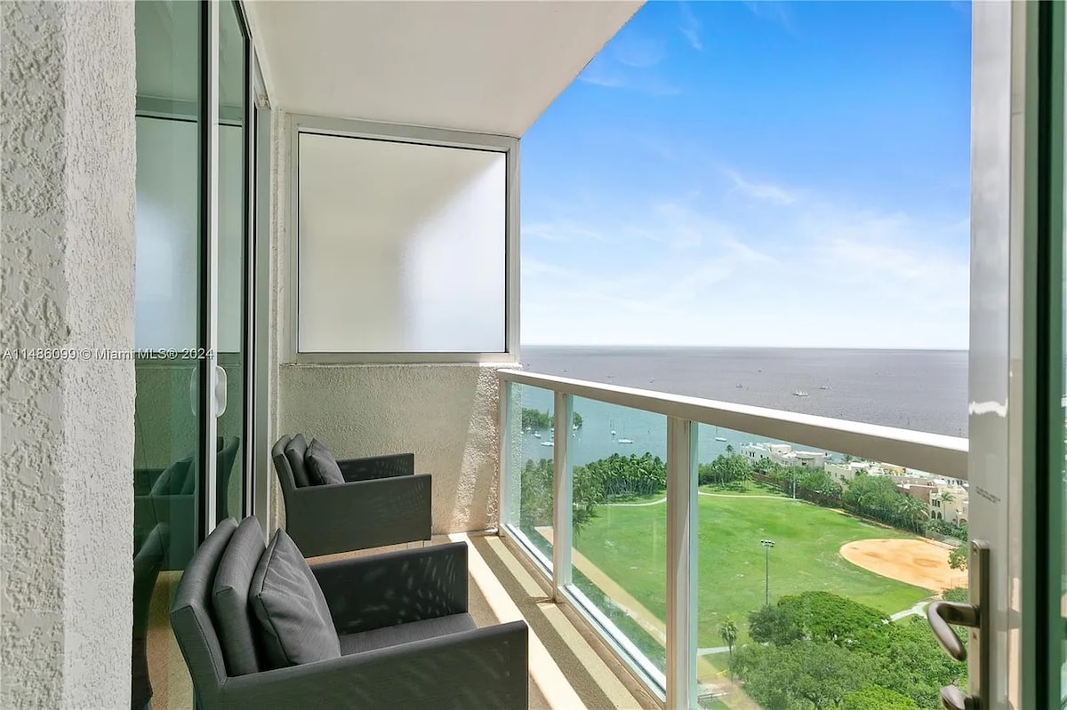 - Njut av fantastisk utsikt över bukten och solnedgångar i denna helt ombyggda Coconut Grove-lägenhet - Privat balkong perfekt för avkoppling och för att njuta av de natursköna omgivningarna - Full tillgång till byggnadens bekvämligheter, inklusive gym, pool, bastu/ångrum och jacuzzi - Restaurang på plats, parkeringsservice och säkerhet dygnet runt. - Beläget bara några steg från Coconut Groves bästa restauranger, affärer och marinor - Fullt utrustat kök, lyxig överdimensionerad dusch och mysigt sovrum med skrivbord.
