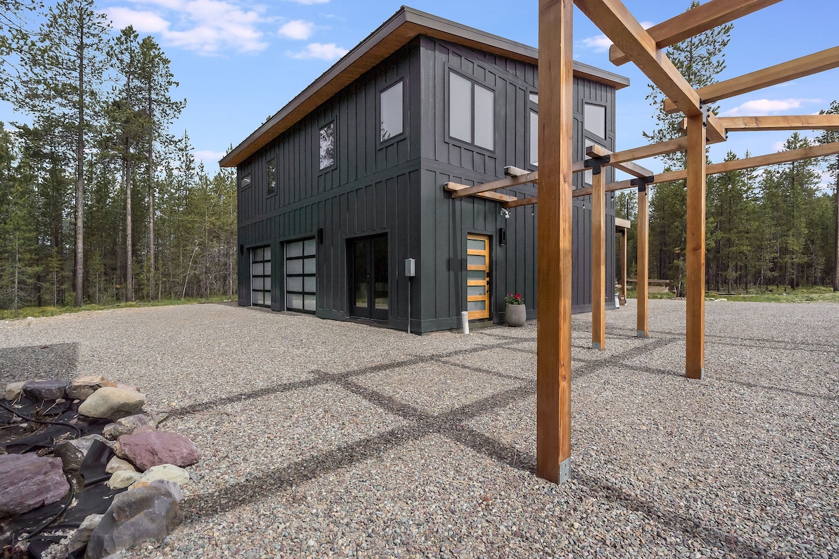 Vår moderna timmerstuga, med 2 sovrum plus loft och rum för att sova 6, är en dold pärla som ligger några minuter från västra ingången till Glacier Park. Med ett rymligt kök, stort matbord, mysig öppen spis, biljardbord, stort promenaddäck med underbar utsikt, utomhuseldstad, picknickbord, trädgård och privat bubbelpool. Med snabb tillgång till forsränning, vandring, cykling, utrustningsuthyrning, aktiviteter och till och med helikopterturer är det den perfekta basen för alla äventyr!