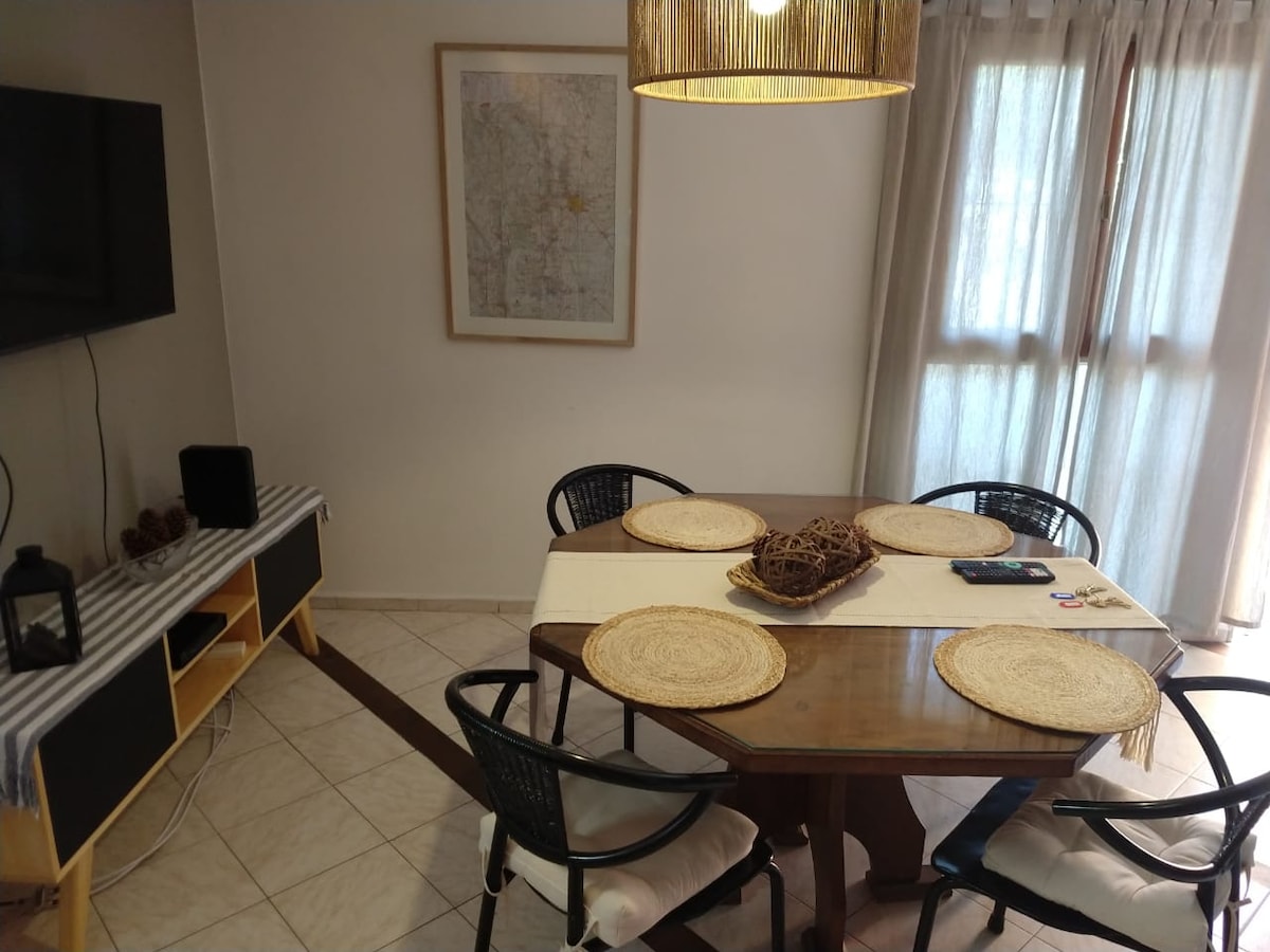 3-rumslägenhet, fullt utrustad, 2 enkelsängar, 1 dubbelsäng (queen), 1 extra enkelsäng, Smart-TV, luftkonditionering, fullt utrustat badrum med dusch, fullt utrustat kök, bordsartiklar, sängkläder, extern PB, uteplats, i centrum i Nuevocentro Shopping area (Pasaje Groppo al 1000) Mycket trevligt område, med lugnet i ett grannskap men steg från centrum. Rymmer 16:00 eller 17:00.