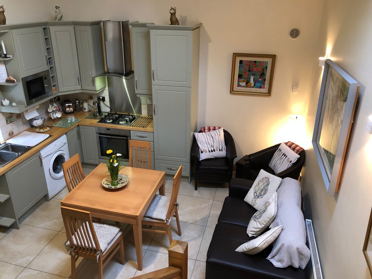 Välkommen till Coach House på Old Rectory. Det är en mysig tvårumsstuga med kök, badrum och vardagsrum, belägen bredvid vårt hem. Den har en egen ytterdörr och en egen uteplats med utemöbler för gäster att använda. Vi har gratis WIFI och kontorsfaciliteter (utskrift, fax, kopiering) och vi erbjuder en tvättservice (extra kostnad på 20 euro och observera att tvättfaciliteterna finns i vårt hus, inte Coach House). För små barn har vi en barnstol och resesäng.