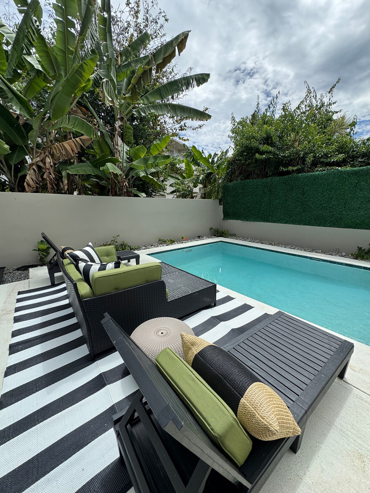 Kom och upplev Aguadillas livfullhet! Hibiscus erbjuder den perfekta blandningen av moderna bekvämligheter. Detta mångsidiga boende har 3 sovrum (king svit med terrass), 2 badrum och pool. Kliv in i den harmoniska utformningen av det inre utrymmet. När du går upp på övervåningen kommer du att stöta på den vackra väggmålningen Flor de Maga. Utomhuslivet är förhöjt med fruktträd, pool och terrass för njutning och avkoppling. Detta är ett rökfritt och vapefritt boende, endast utomhus.