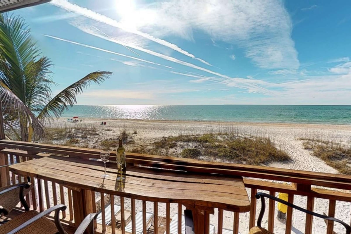 Gulf Beach Front! Walk to Restaurants + Pier!