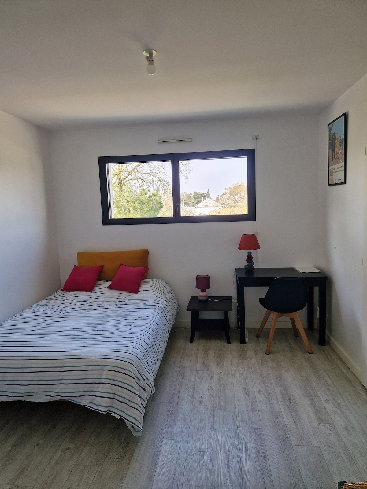 Välkommen till denna charmiga fristående studio, badad i ljus och fullt utrustad, belägen på bottenvåningen i vårt hus i Saint Aignan. Denna ljusa studio är idealiskt belägen mellan Nantes och havet och rymmer upp till 4 personer + ett barn under 4 år gratis. Njut av en trevlig utsikt över en frodig trädgård, omgiven av palmer, ett bananträd och vinrankor. Detta ställe är perfekt för en minnesvärd semester eller för att ladda batterierna efter en arbetsdag.
