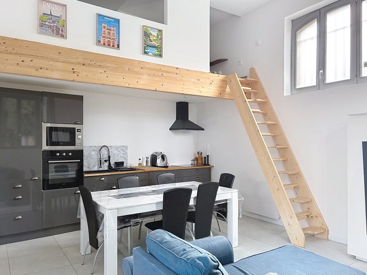 ✨ Loft 50 m² – Centrum Amiens Bo i detta vackra 50 m² ljusa loft, idealiskt beläget i hjärtat av Amiens, i ett lugnt och säkert område med utomhuskamera. Ett stenkast från katedralen, Saint-Leu, tågstationen och butiker, allt ligger inom gångavstånd. Bekväm och elegant, den är perfekt för en turist, affärsresa eller romantisk vistelse. 🚗 Gratis gatuparkering (i mån av tillgång).