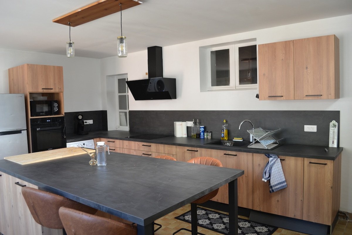 Detta varma hus, beläget mitt i en vingård, är idealiskt för gemytliga återföreningar. Det har 3 sovrum, 2 badrum, vardagsrum, matsal, kök, terrass och till och med en bordsfotboll för stunder av avkoppling. Du kommer att bo på samma egendom, där du kan smaka på våra viner och upptäcka våra vingårdar. Notera: Vingården ligger precis i anslutning till huset. På vardagar kan aktiviteten orsaka en del oväsen.