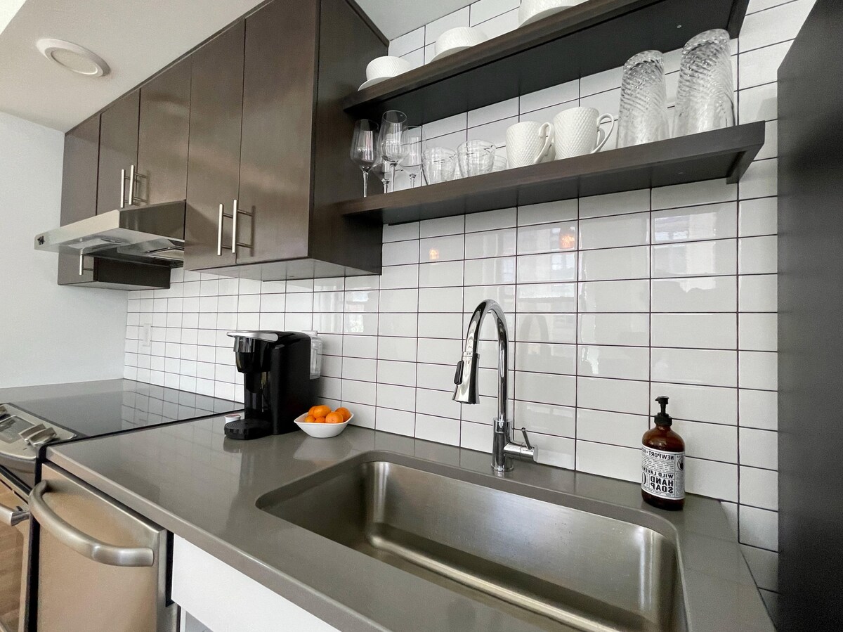 Lyxig lägenhet i ett litet samhälle, denna enhet har apparater i rostfritt stål, bänkskivor i granit och en öppen planlösning. Vi har ett 24-timmars fitnesscenter, 24-timmars kaffebar, och under sommarmånaderna ingår även en saltvattenspool (öppnar i slutet av maj för säsongen). Vi har också en bekväm plats som är lätt att hitta. Denna enhet ligger på 3:e våningen - 2 trappor (ingen hiss).