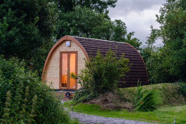 Självhushåll lyxig glamping pod. Ett mysigt privat utrymme inbäddat vid sidan av vår stuga. Det har ett pentry med; Mikrovågsugn Minikyl och islåda Vattenkokare Brödrost Dolce Gusto-kaffemaskin. Egen dusch Dubbelsäng och en soffa. TV spelar endast DVD-skivor, med ett bra urval av DVD-skivor. Det finns ingen spis i podden men det finns en Gas Plancha (Hot Plate) och en enda gasring som ligger i en yttre matlagningsstation bredvid podden. Wifi