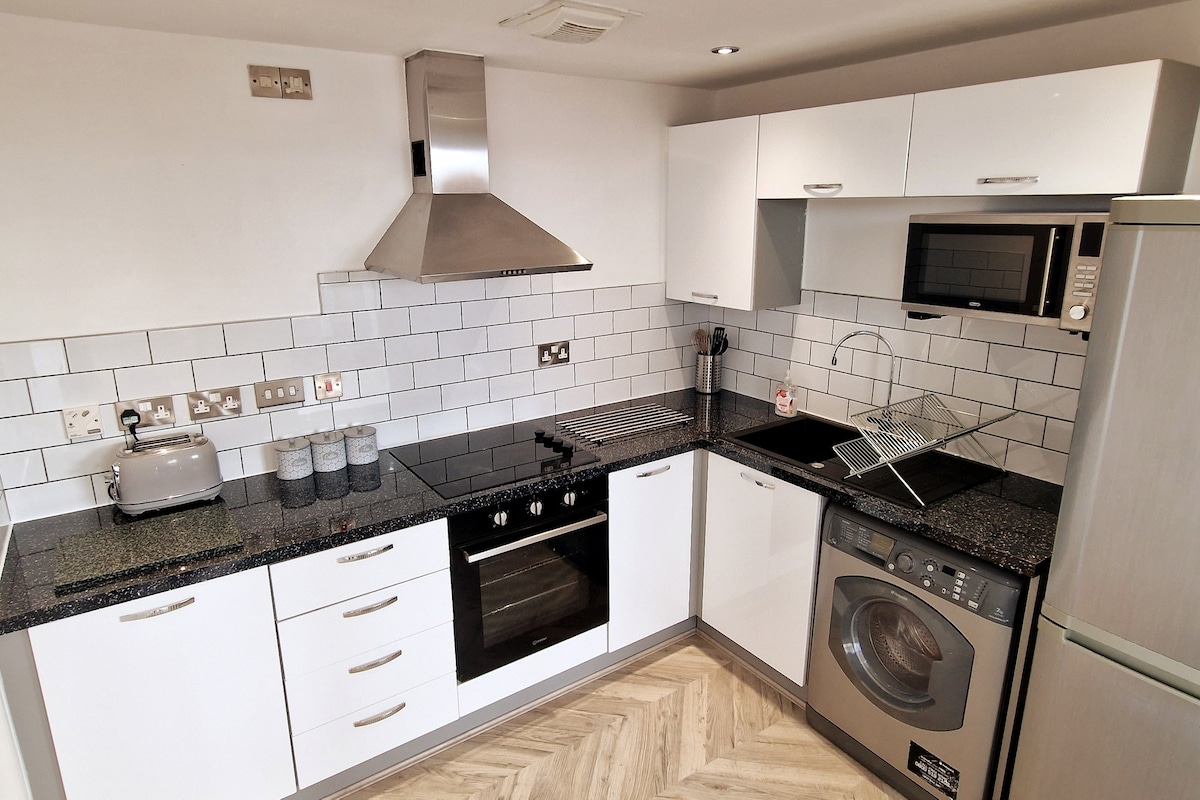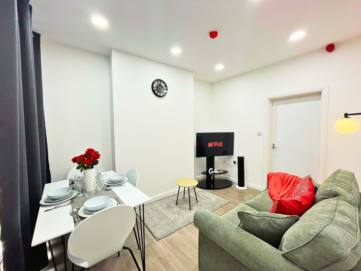 En lyxig 2-rumslägenhet i staden. Perfekt för affärsresor, helgresor eller längre vistelser. Viktiga funktioner: ✓2 sovrum, 2 badrum – perfekt för familjer och affärsresenärer ✓Utmärkt läge – 5 minuters promenad till Highcross, 10 minuters promenad till järnvägsstationen ✓Lyxig inredning – smart-TV, snabbt wifi och självincheckning ✓Exklusiva matrabatter – i samarbete med de bästa lokala restaurangerna ✓Tidig incheckning/sen utcheckning är möjlig GRATIS PARKERING FÖR LÅNGSIKTIGA GÄSTER!