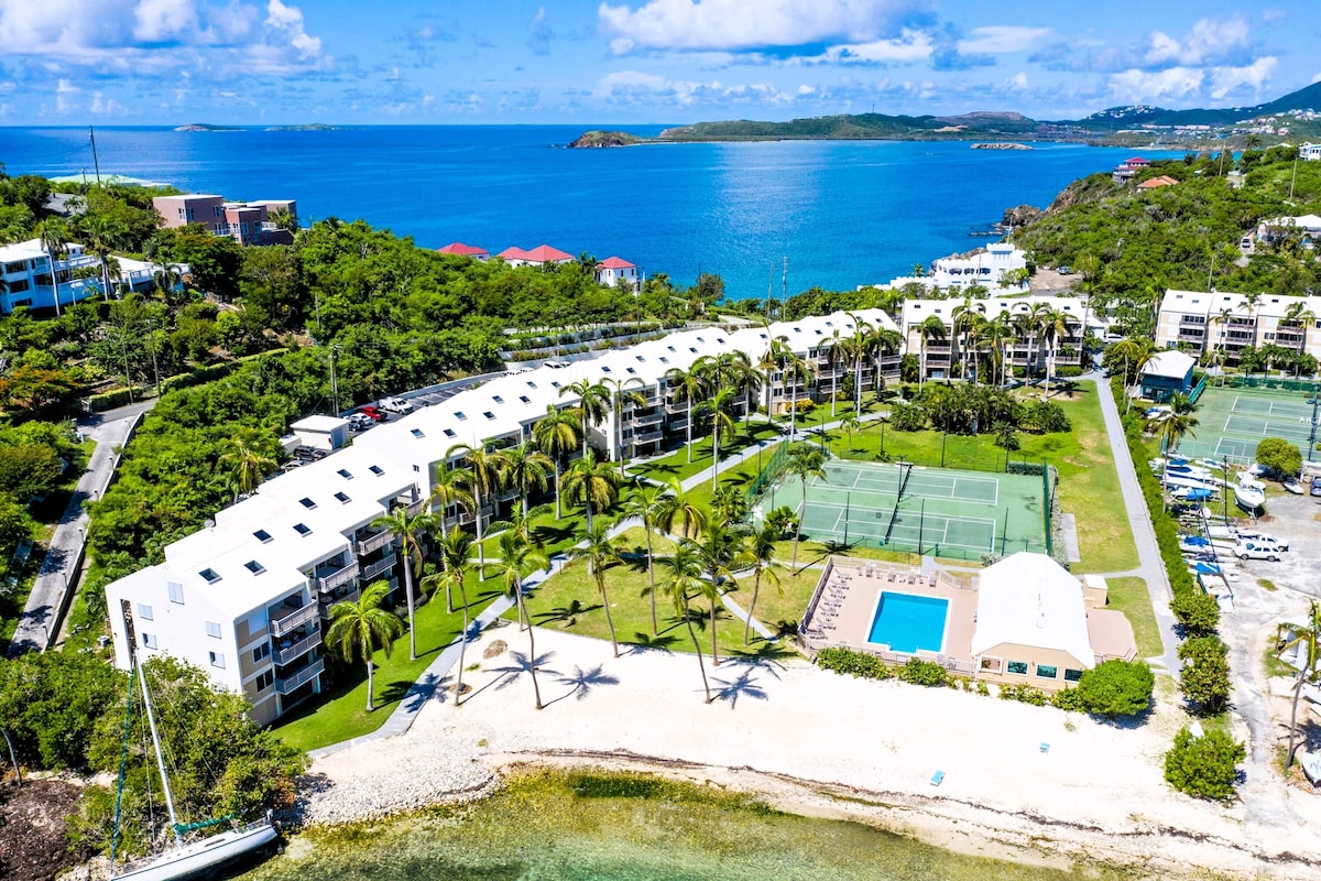 VĂ„r fullt renoverade 1BR/1BA lĂ€genhet Ă€r PERFEKT för par, smĂ„ familjer eller en vĂ€nresa. Njut av fantastisk havsutsikt och ljudet av vĂ„gor frĂ„n varje rum eller din privata balkong. Titta pĂ„ hisnande solnedgĂ„ngar och svalka dig i en av tre kristallklara pooler. BelĂ€get i ett gated community, bara nĂ„gra steg frĂ„n stranden, pool vid havet och middag vid havet. Bara 10 minuter till Red Hook (fĂ€rjor till St. John och BVI) och Havensight, och 15 minuter frĂ„n flygplatsen â din perfekta öflykt! đŽ