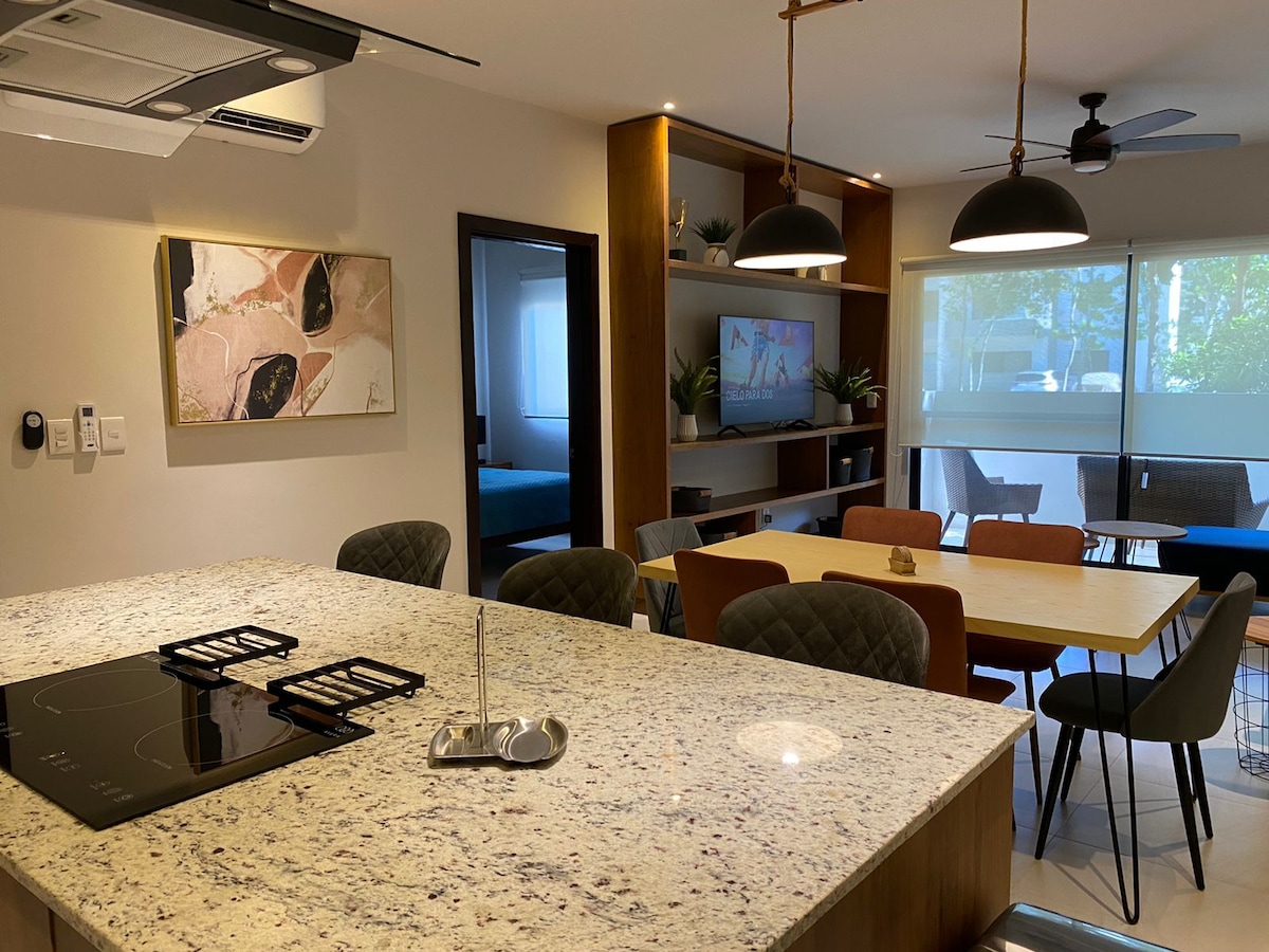 Välkommen till ditt hem hemifrån! Inbäddat i ett helt nytt modernt torn i centrala Playa del Carmen, är vår 1BR lägenhet den perfekta kombinationen av komfort och stil. Det är en del av en bostadsrätt som erbjuder det bästa av två världar: intimiteten och rymligheten i en lägenhet, tillsammans med exceptionella tjänster för att göra din vistelse otroligt bekväm.