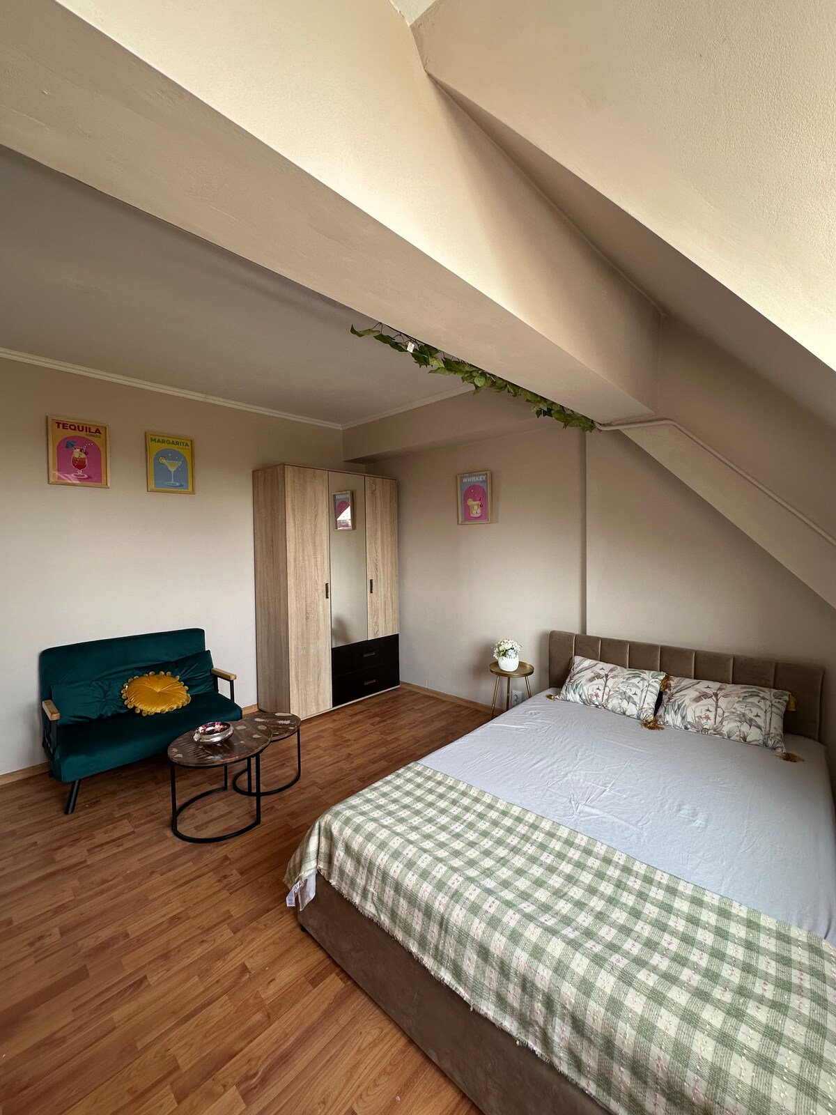 En modern och raffinerad studio, utformad för dem som uppskattar lugn, diskretion och komfort i ett exklusivt utrymme. Studion ligger i ett avskilt och lugnt område och erbjuder säker kortåtkomst till komplexets barriär och privat parkering ingår. På bara 5 minuter med bil kan du nå stadens centrum eller julmarknaden, och en avkopplande 20 minuters promenad tar dig direkt till hjärtat av Craiova. Tågstationen och den internationella flygplatsen ligger bara 5–10 minuter bort.