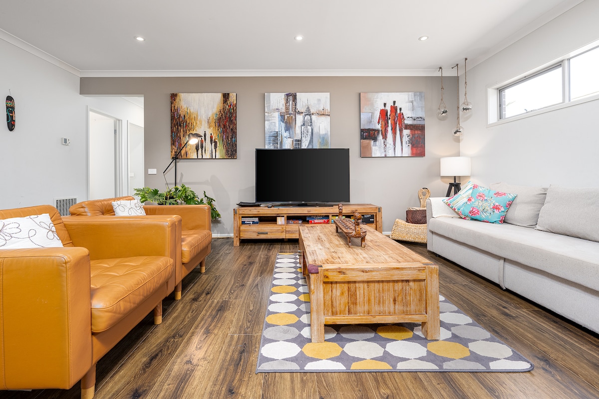 Detta radhus är perfekt för små familjer eller par, i ett lugnt, lummigt läge mittemot en park, perfekt för promenader och picknick. Bil behövs inte, eftersom köpcentret "Eden Rise" ligger intill och Zagames inklusive MPD biffkök ligger gångavstånd bort. Om du har en bil finns ett helt slutet och säkert garage för 2 bilar. Huset ligger nära sjukhus som Casey & St John of God och nära Berwick Village där det finns bra restauranger, butiker och botaniska trädgårdar att utforska.