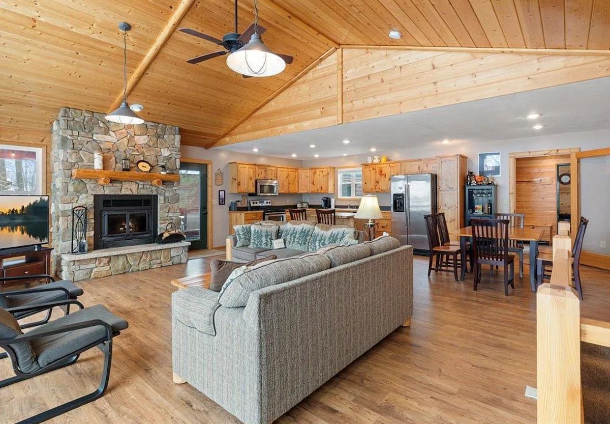 Slappna av på The Nordic, där skandinavisk charm möter modern komfort! Njut av mjuka sängkläder, en öppen spis, ett fullt utrustat kök och lyxiga ytor. Utforska 175 meter sjöstrand, en sandstrand, paddelbrädor och en båtbrygga. Koppla av i bubbelpoolen för 6 personer med sjöutsikt eller ta dig ut på Paul Bunyan Trail för äventyr året runt. Perfekt för familjer, par eller vänner. Bekvämligheter: Smart-TV, spel, tvättmaskin/torktumlare, eldstad, ninjakurs och mycket mer! Boka din tillflyktsort nu!