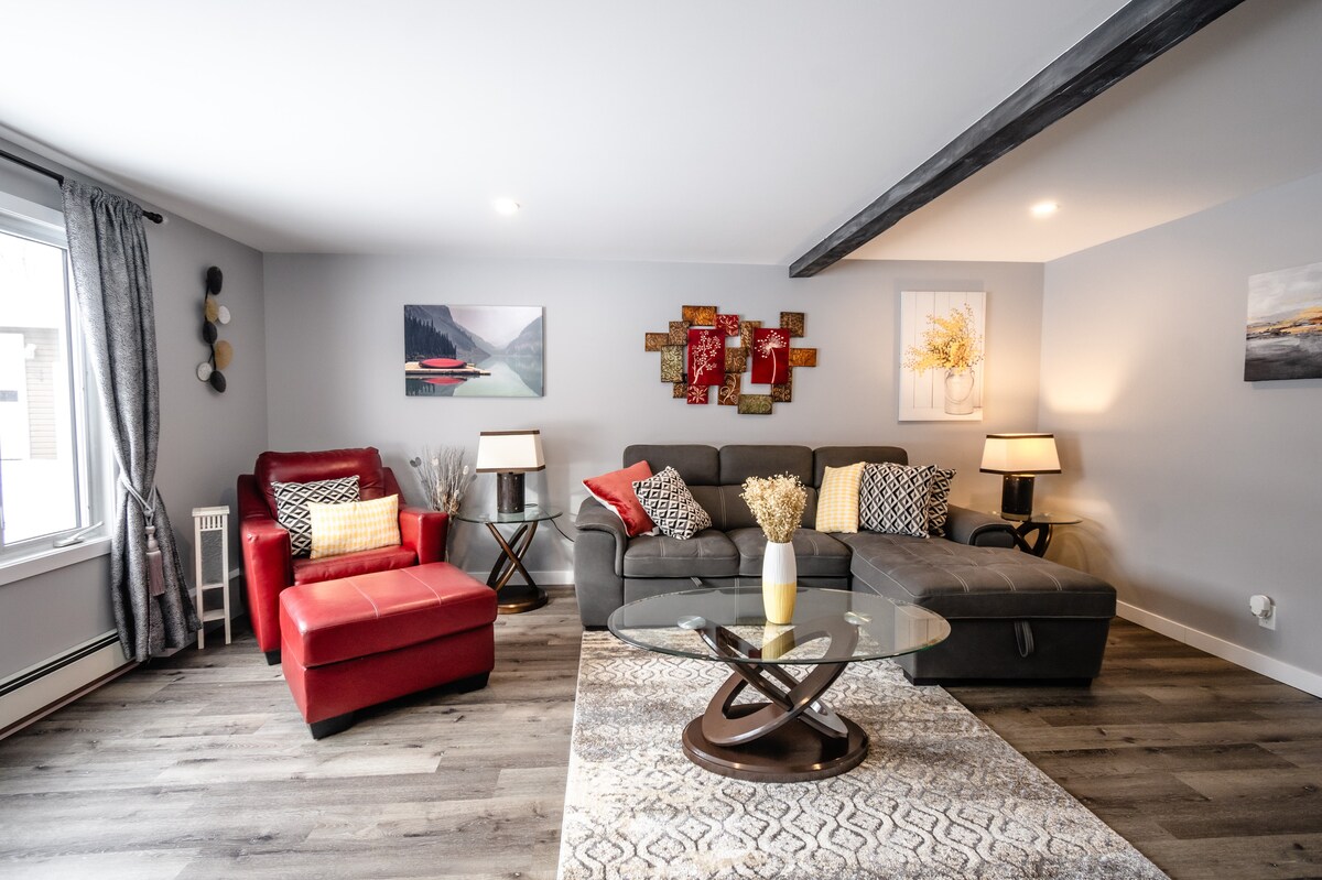 Lakeview Loft ligger inbäddat i naturen med utsikt över sjön Chebogan. Detta utrymme har en mysig atmosfär med personliga detaljer, perfekt för alla resenärer. Oavsett om du är ute efter en avkopplande semester, en fisketur eller ett stopp för att koppla av efter skoteråkning, har vi allt du behöver. Inuti hittar du ett mysigt öppet koncept loft med ett pentry, vardagsrum (TV och öppen spis), matplats, arbetsområde, tre stycken badrum och studiosovrum. Obegränsat WIFI! Licens för korttidsuthyrning #2024-04