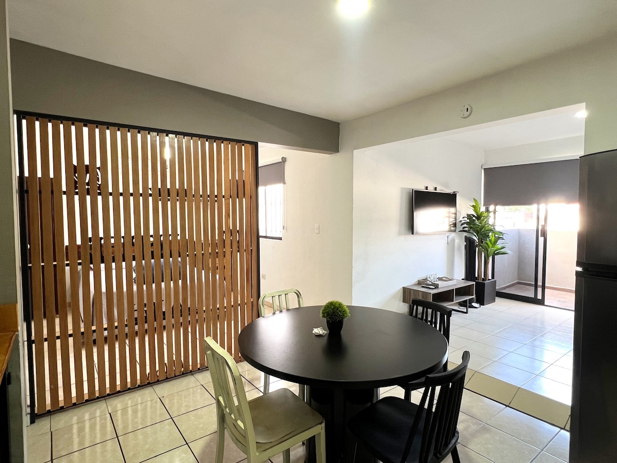 Vacker ny lägenhet, utformad för att rymma 2 till 4 personer, belägen bara 1 minut från den spektakulära Tomateros de Culiacán-stadion, mycket nära hittar du restauranger, stormarknader, den berömda Paseo del Ángel, den vackra katedralen, Lomita, 10 minuter från Forum och Banorte Stadium, mycket säkra områden. Njut av enkelheten i detta lugna och centrala boende. ***Vi fakturerar*** ***Parkering på gatan***