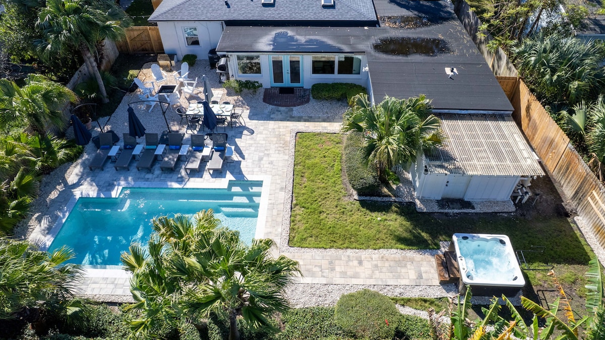 Det bästa läget på ön. Ha kul med hela familjen på denna eleganta oas från mitten av århundradet. Mint Julep är ett vackert renoverat boende! Det erbjuder det bästa inom design och tillgänglighet till allt St. Simons har att erbjuda. Från shopping till sand, är boendet inom gångavstånd från alla butiker och restauranger i byarna och en enkel kort promenad till stranden. Perfekt för stora sammankomster, bröllopsevenemang och sommarnöjen året runt!