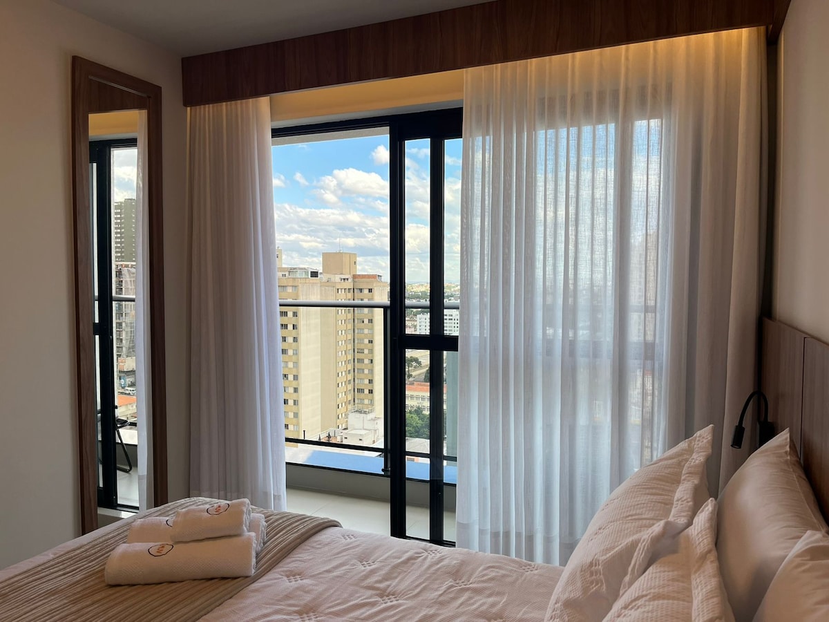 Modern lägenhet i ett centralt område. Lägenheten har 1 svit (dubbelsäng), luftkonditionering, Wi-Fi, ett vardagsrum med en bäddsoffa integrerad med köket och TV. Kompatibel med upp till 4 personer. Privilegierat läge nära viktiga punkter i staden, SJUKHUS, UTFPR, FAE, SHOPPING, SANTA CASA, ARENA DA BAIXADA, GUAIRA TEATER, KOMMUNAL MARKNAD Byggnaden erbjuder ett spelrum, coworkingrum, gym, takterrass, bland andra fritidsutrymmen. Region nära stadens viktigaste landmärken