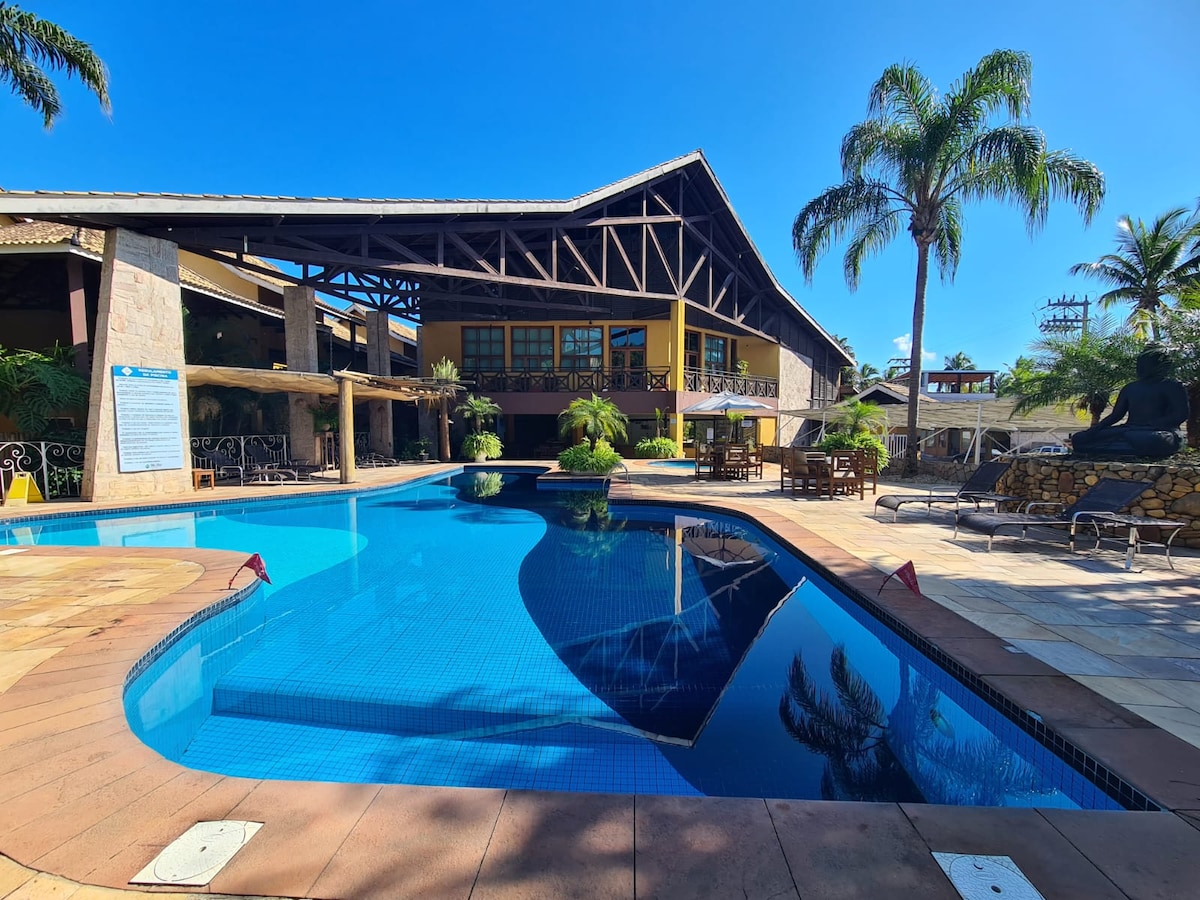110m² hus, bekvämt och säkert, i slutet område mitt i den Atlantiska skogen, 50m från ingången till stranden och nära poolerna och rekreationsområdet. Med 3 sovrum (ett svit), stort vardagsrum med utsikt över skogen. 50-tums-TV, Sky och Netflix. Wi-fi (250 Mbps). Alla rum och vardagsrum med luftkonditionering. Plats för 3 bilar. Fantastisk fritidsinfrastruktur, med pooler, jacuzzi, gym, bastur, tennisbanor, beach tennis, fotboll och strandservice (stolar och parasoll). Sängkläder och handdukar. Acceptera ditt husdjur😀