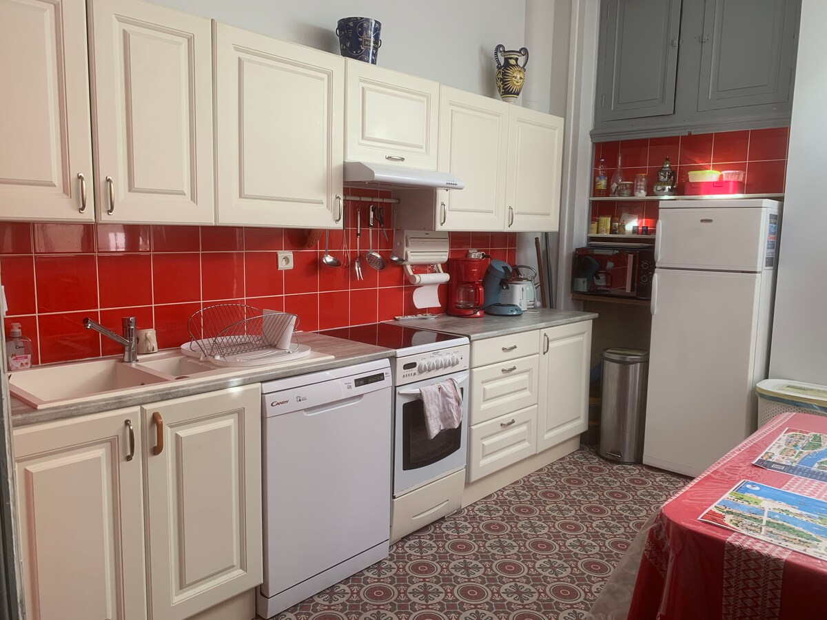 3-rumslägenhet i RCH , renoverad, CENTRUM på en lugn gata med gratis parkering, bestående av ett utrustat kök (kyl- och frys, induktionshäll med ugn, mikrovågsugn, diskmaskin, tvättmaskin, normala kaffebryggare och senseo) Ett vardagsrum med bekväm bäddsoffa, TV och matsal, duschrum (dusch och toalett), separat toalett, Rum1 med dubbelsäng, TV Sovrum2 med dubbelsäng+enkelsäng Uteplats, internet, Husdjur tillåtna.