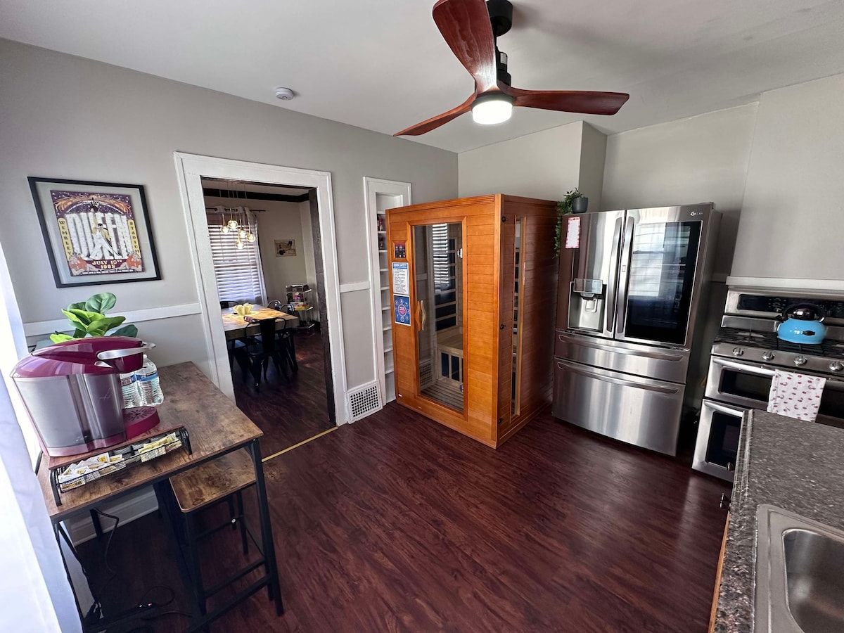 Välkommen till vår mysiga svit i charmiga Hudson, OH – en idyllisk tillflyktsort perfekt för par eller ensamma resenärer som letar efter en privat, fridfull tillflykt. Detta intima utrymme kombinerar komfort, stil och avkoppling med inslag av lyx för att göra din vistelse oförglömlig. Privat uteplats och skyddad veranda/entré, infraröd bastu för två personer, öppen spis, två Roku-TV och fullt utrustat kök med gratis kaffebar. Minuter från centrala Hudson, Cuyahoga Valley National Park och Blossom Music Center.