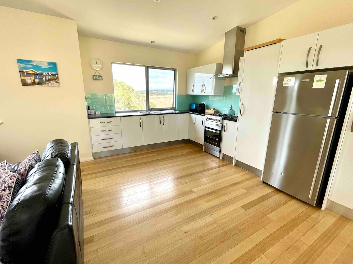 The Grain Store is a boutique studio style unit located on the western end of the Kangaroo Island Brewery production shed. A one bedroom studio with a queen bed, kitchenette, and a weber q on the deck. We are completely off-grid! A comfy sofa bed and heater for those cold nights. Great panoramic views of Nepean Bay and MacGillivray Hills. Walk to the KIB cellar door in 30 seconds! We also have a few other accommodation sites on the brewery property, check them out by searching KI Brew Quarters!