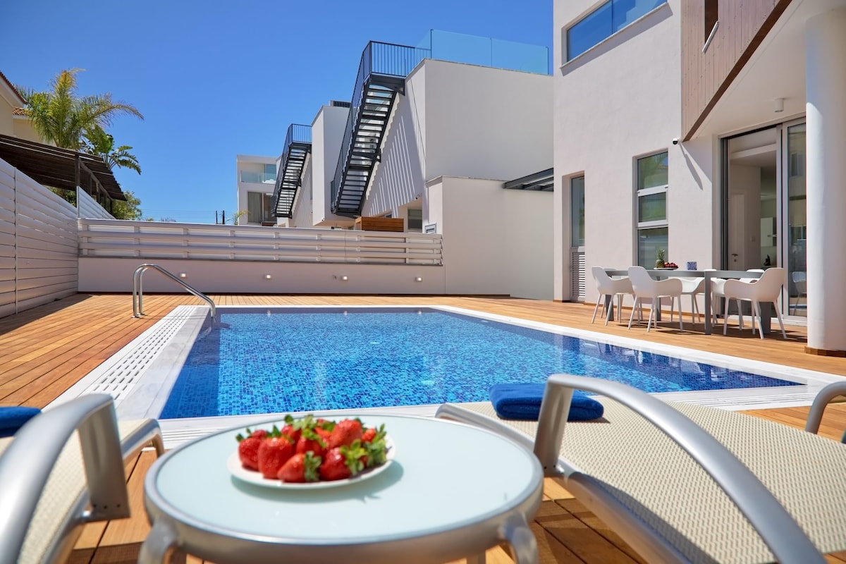 Detta är en strandvilla med havsutsikt idealisk för familjer, liksom ett arbete hemifrån för längre vistelser. Boendet ligger i ett härligt bostadsområde med en privat väg, redo att välkomna gäster från alla nationaliteter. Exakt framför komplexet finns en vacker strand som huvudsakligen används av invånarna i komplexet (Sirena Bay), vilket gör det onödigt att använda en bil. Detta gör det enkelt att simma så många gånger du vill under hela dagen. Det ligger också bara 2 km från den härliga Ayia Napa marinan