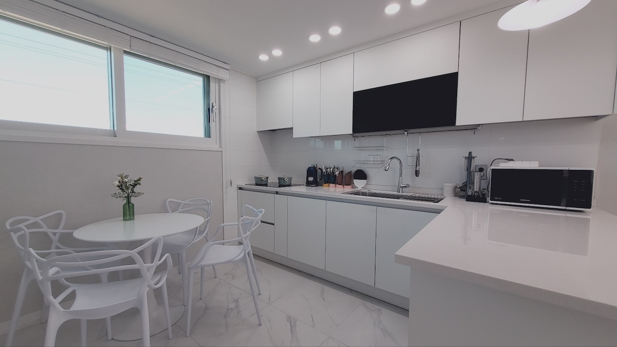 ※ Bokningar som överstiger det maximala antalet gäster, inklusive spädbarn och småbarn, kommer inte att godkännas. Vi ber dig att kontrollera kapaciteten för din vistelse. ※ Dags att svara på Airbnb-meddelanden - 10:00 - 22:00 -------------------------------------- En dröm om att förlora ljus i sprickorna i konstgjorda grå byggnader. Det är ett utrymme där du kan komma bort från ditt dagliga liv, organisera ditt förflutna genom exotiska Sanbangsan Mountain och det lugna fyra årstiderna hav, och få möjlighet att drömma om morgondagen. Den naturliga designen och två sidor av väggen var konstruerade med glas för att ge den en uppfriskande känsla av öppenhet, och istället för gardiner och Bla-in använde vi en glutare som användes av lyxhotell etc., och skapade ett rent och lyxigt rum. Vi vill ge mer värde än ett utrymme som skapar värdefulla minnen.
