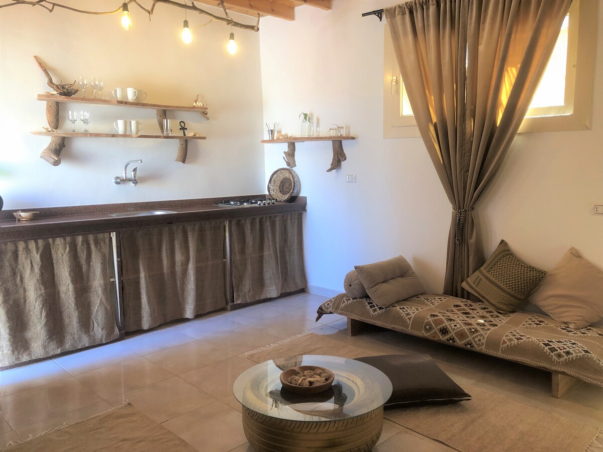Luta dig tillbaka och koppla av i detta lugna, eleganta beduinboende. Njut av lugnet, lugnet och solskenet i solstugan, dagdröm på uteplatsen och njut av en solnedgång på uteplatsen i den rymliga öken trädgården. Perfekt beläget på Assalah Beach och Eel Garden Reef, har du både badstranden, korallrevet och souken bara 30 sekunder från din dörr. Lugnt och fridfullt, kaféer, restauranger och butiker finns överallt. Kom och njut av det bästa strandlivet i Dahab!