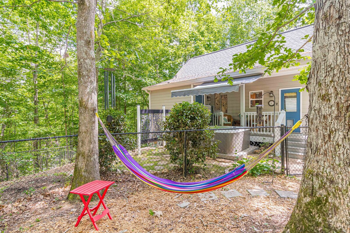 Mysigt och pittoreskt, perfekt för en privat flykt för att koppla bort allt liv och all rörelse i vardagen. Bubbelpool! Queen pillow top säng, lyxiga sängkläder, 42' ROKU HDTV. Kök; ugn i full storlek, mikrovågsugn, brödrost, kylskåp i full storlek, redskap, köksredskap och Keurig. Fullt bad inklusive plyschhanddukar och badrockar. Däck; korgstolar och "George Forman" grill. Central klimatkontroll som är tyst! En avkopplande tillflyktsort för den som vill komma bort till den orörda skönheten i norra Georgia!