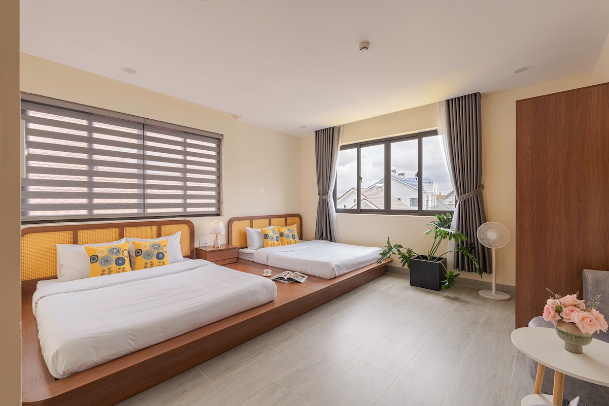 - Rummet på 17 m² har fönster, är inrett med moderna grå toner och en lantlig scenmålning – vilket skapar en känsla av både värme och frihet. - Rummet är inte för stort men får naturligt ljus och sval bris från fönstret, med utsikt över det öppna utrymmet utanför. - 24/24 varmt vatten med full utrustning: torktumlare, strykjärn, vattenkokare,... - Smart-TV med gratis Netflix för dig att koppla av efter 1 dag av att utforska Da Lat. - Gratis daglig städning och motorcykeluthyrning finns.