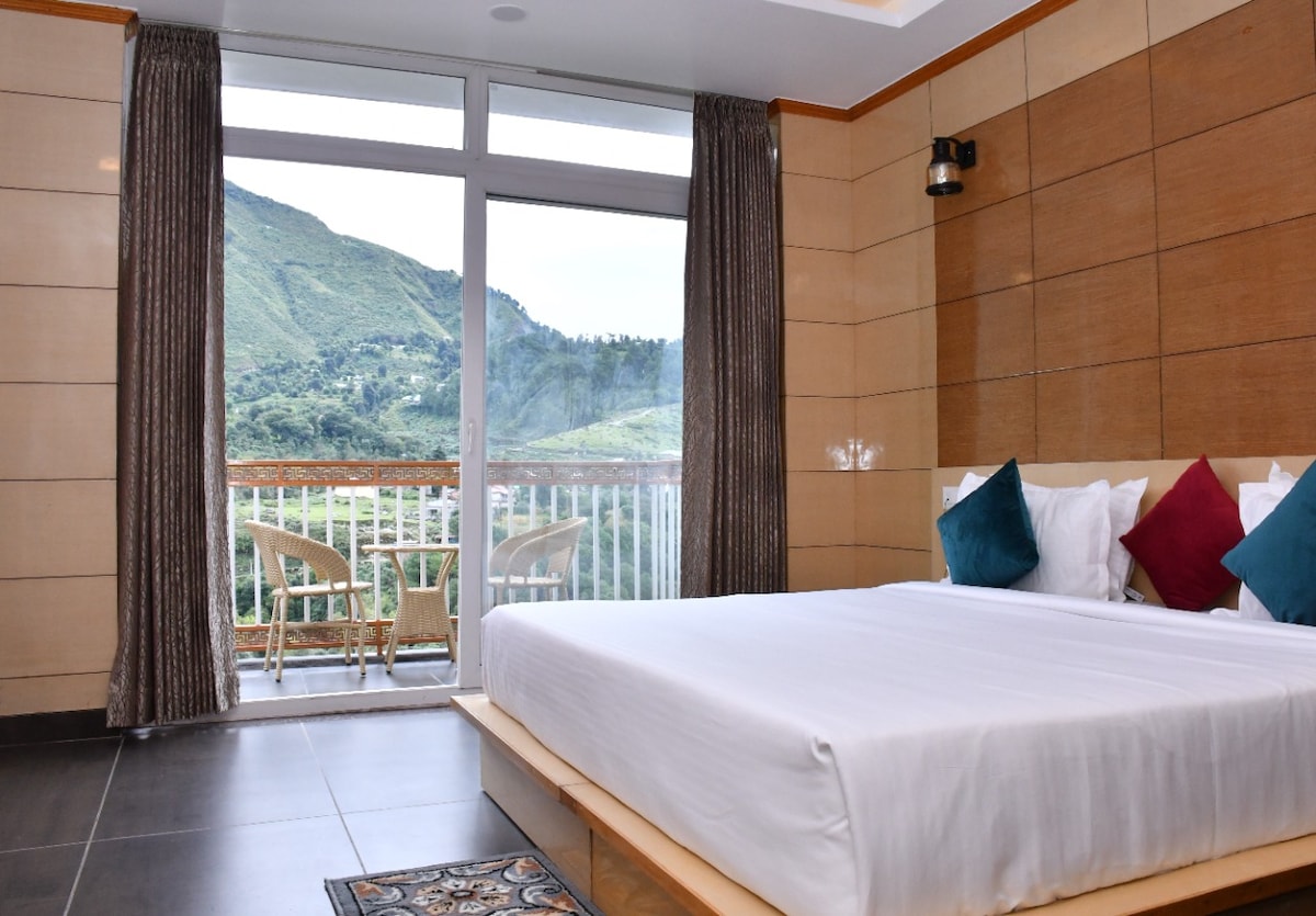 Panoramic Views For those who appreciate the beauty of nature, our Premium Rooms Centrally Heated with Private Balcony & Panoramic views of Dhauladhar Mountain Ranges are the perfect choice. Wake up to the sight of majestic mountains and verdant valleys, as the sun casts a golden glow over the landscape. Breathe in the crisp mountain air from your private balcony and let the tranquility of the surroundings envelop you.