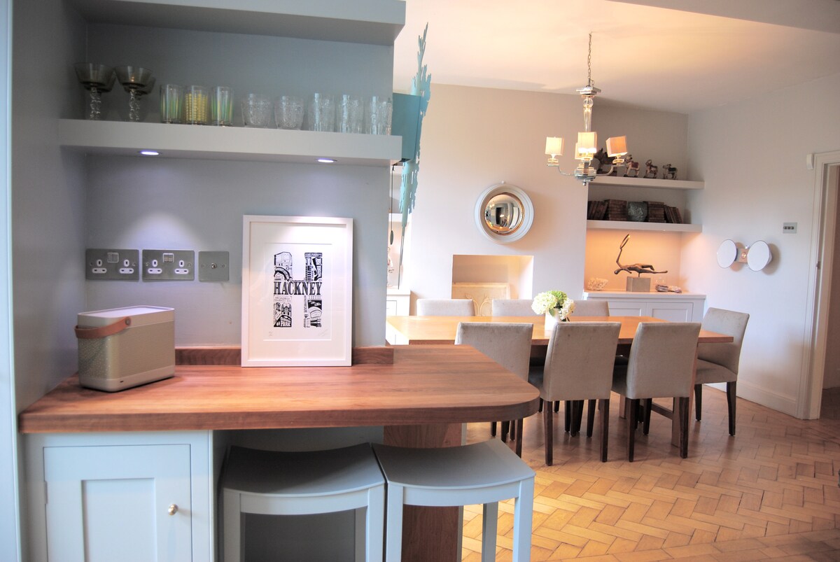 Välkommen till vårt karaktärsfulla hem och trädgård i östra Londons favoritgrannskap. Hemma hittar du charmiga viktorianska funktioner, zen medelhavsvibbar, ett bra kök för matlagning och en liten bit av himlen i trädgården. På väg ut kan du leva som en lokalinvånare med de absoluta höjdpunkterna i Hackney precis utanför dörren. Dalston Junction och Hackney Central stationer ligger 7 minuters promenad bort med snabba och enkla förbindelser till centrala London. Två Super-värdar är värdar!
