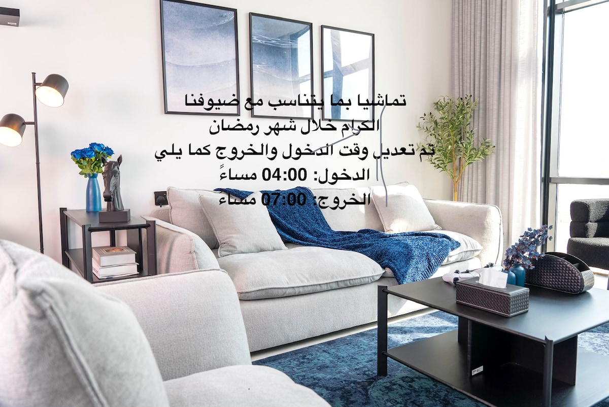 **Utmärkt läge 📍** Lägenheten ligger i ett lyxigt bostadsområde, Nära till stormarknad, tvättomat, samt en promenadväg. Endast 5 minuter från Bahrain Bridge🇧🇭. **Bekväm och modern studiolägenhet med ett smart incheckningssystem (Self Check-in) 🔑** **Fördelar:** - Nyinredd med klassiska möbler. - Utrustad med internet🛜 ⚡. - Inkluderar en integrerad servicehörna (kylskåp, mikrovågsugn, vattenkokare och espressomaskin☕️. - ** Faciliteter: ** - Innehåller grönområden, pool (Badtid: 09:00 till 18:00)🌞. Njut av en bekväm och speciell vistelse!