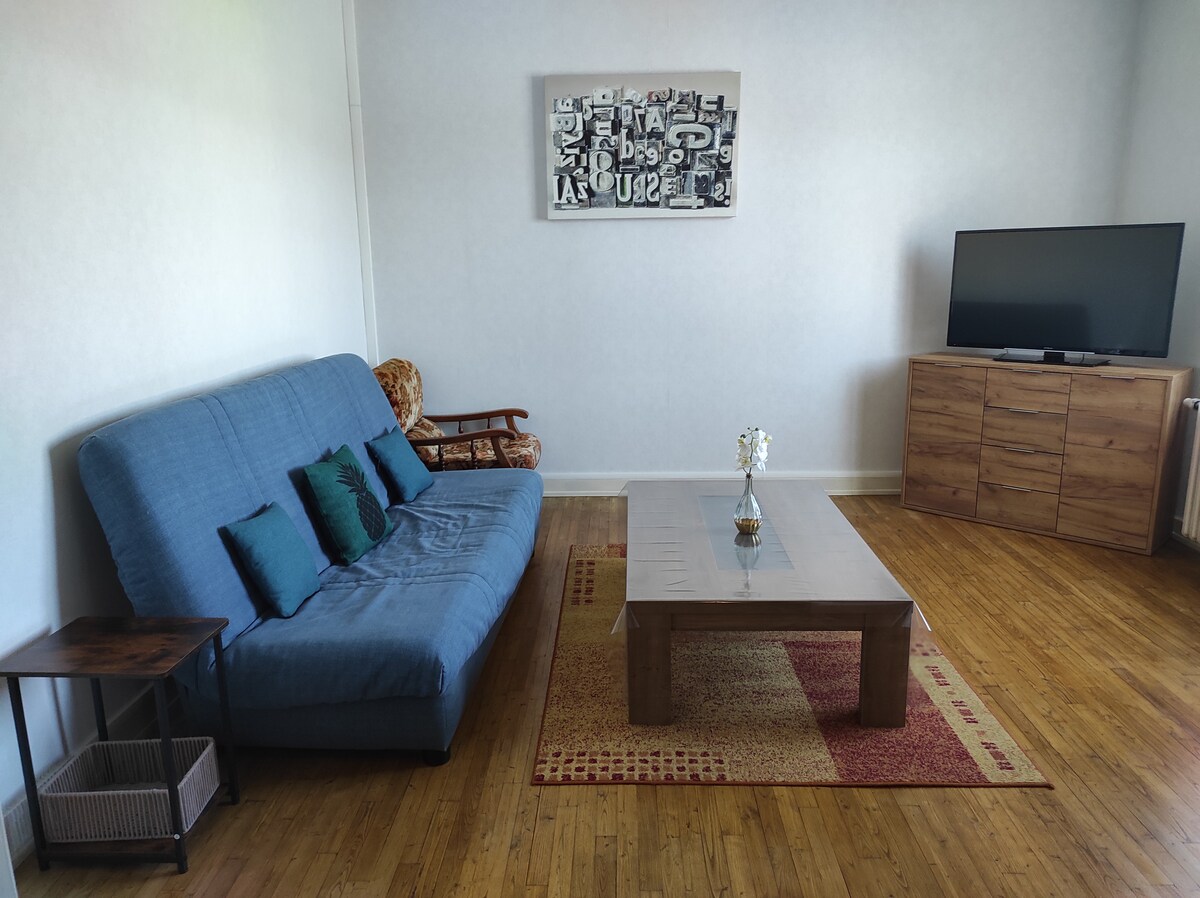 Möblerad för 8 personer, belÀgen 30 minuter frÄn Futuroscope, Aquascope och Arena. 20 minuter frÄn La Roche-Posay (spa) BottenvÄning: Soffa, TV, wifi, kök, kaffebryggare, Tassimo, raclette-utrustning, sovrum med 1 sÀng pÄ 140 cm, toalett, badrum. PÄ övervÄningen: Sovrum 1 sÀng 140 med TV, sovrum 1 sÀng 140 och 2 sÀngar 90, badrum med toalett. TvÀttmaskin, torktumlare, trÀdgÄrdsmöbler, grill, PÄ begÀran sÀngklÀder och handdukar 11 ⏠/ person per vistelse