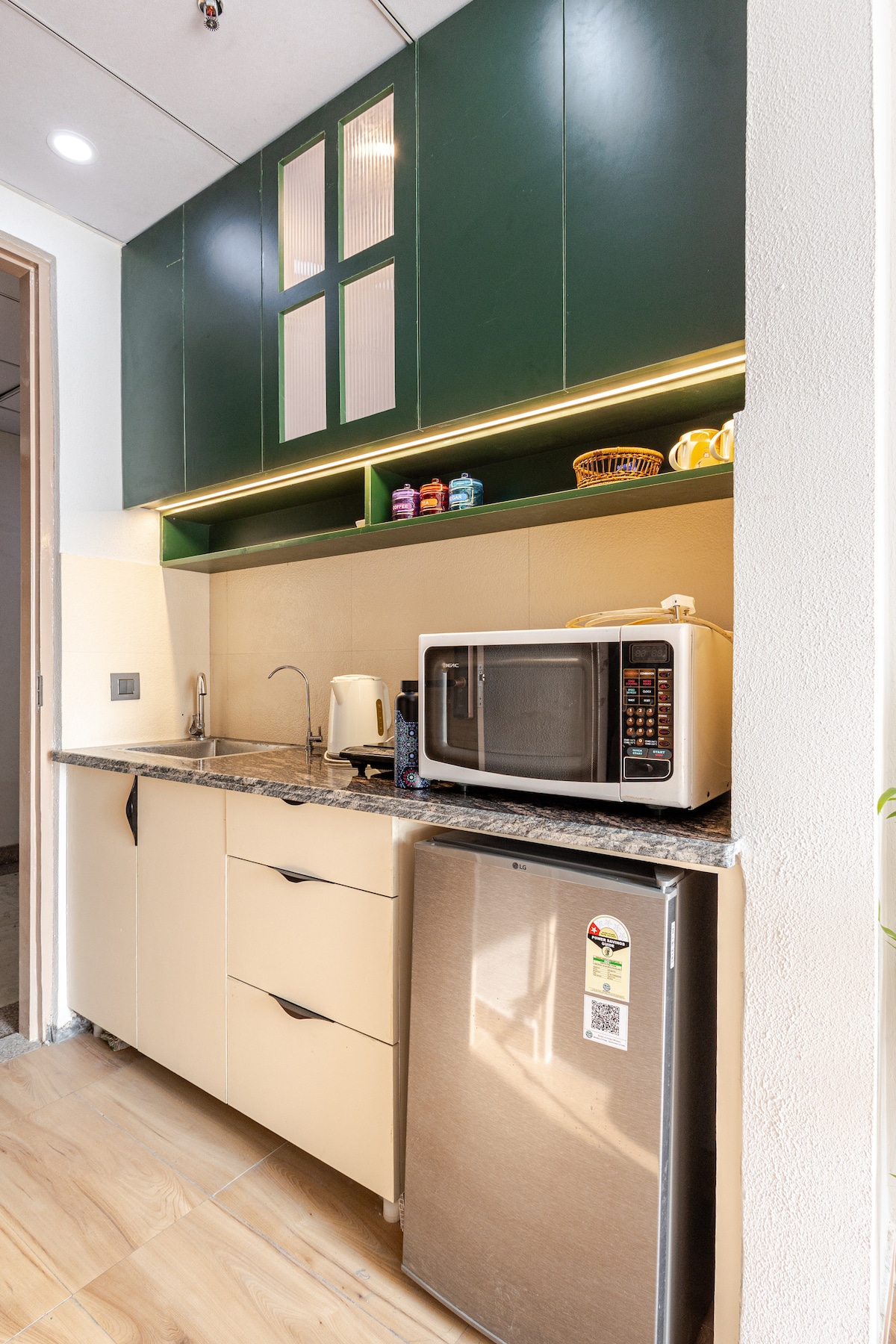 Välkommen till Trovero Suites! Mitt i hjärtat av Greater Noida, nära Expo Mart (8 km) Vad du kommer att älska: ✔ Privat balkong – Njut av den fascinerande utsikten över radhuset ✔ Utmärkt läge – Nära till de främsta attraktionerna, restauranger ✔ Modern komfort – Ett vackert inrett utrymme med en bekväm säng, mysiga sittplatser och elegant inredning ✔ Fullt utrustat kök – Laga dina favoritmåltider med lätthet ✔ Snabbt wifi och smart-TV – Håll kontakten och underhållen. ✔ Lugn atmosfär – En fridfull lyxig och privat tillflyktsort