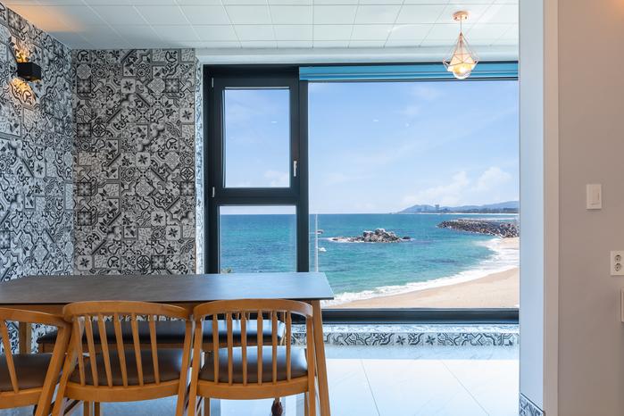Elegant och modernt boende med havsutsikt från fönstret i Gangneung Spa, rum 401