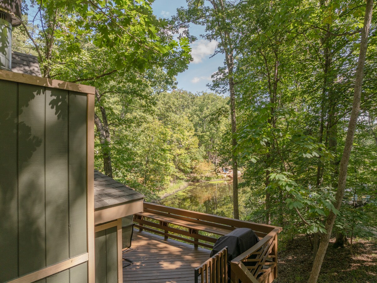 Treehouse Day Spa ligger inbäddat på 3 skogbevuxna tunnland i St. Charles County. Det finns en delning intill mig men jag har mina träd!!! Kom bort från allt medan du är nära allt på samma gång. Augusta vingårdar, Main Street St. Charles och Streets of Cottleville ligger alla inom några minuter från läget! Det finns två hyresenheter i trädhuset: Spa-sviten och takvåningen. De har separat ingång och är privata utrymmen. Ladda batterierna! Omgruppera Koppla av Uppdatera