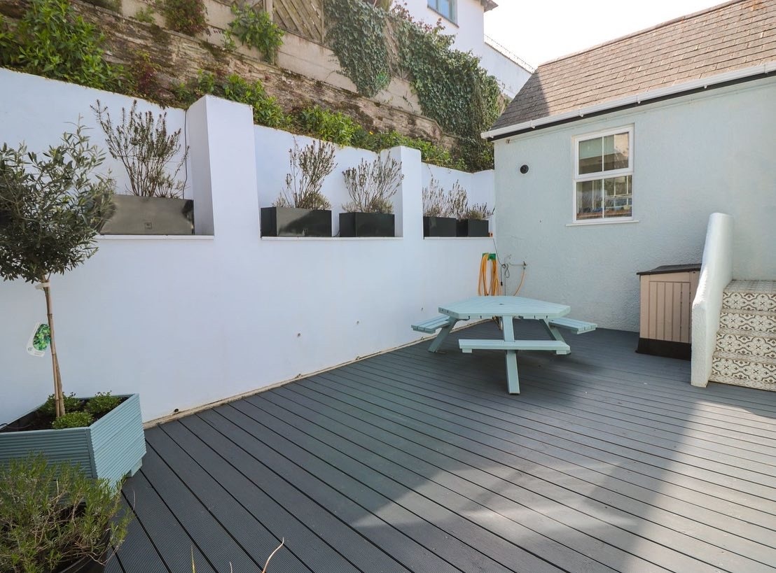 GARDEN RETREAT Garden Retreat har en öppen planlösning och matsalskök som öppnar ut mot trädgården. Ett separat sovrum har också tillgång till trädgården. Sovrummet har ett eget badrum och den tredje sängen är en nedfällbar i loungen. Byggd på trappor som tar dig till hamnen. Trädgårdsretreatet har en privat, solig och avskild murad trädgård komplett med utomhusarmaturer och en ny grill. Med havsutsikt glimtar och privat parkering utanför gatan.